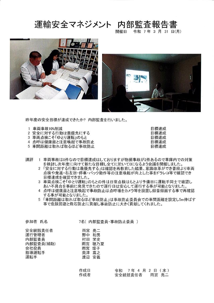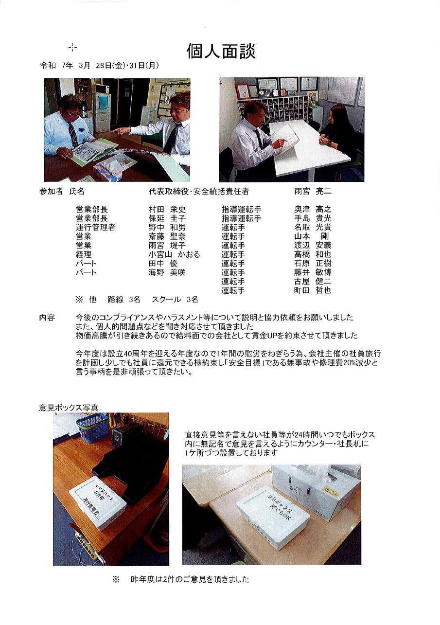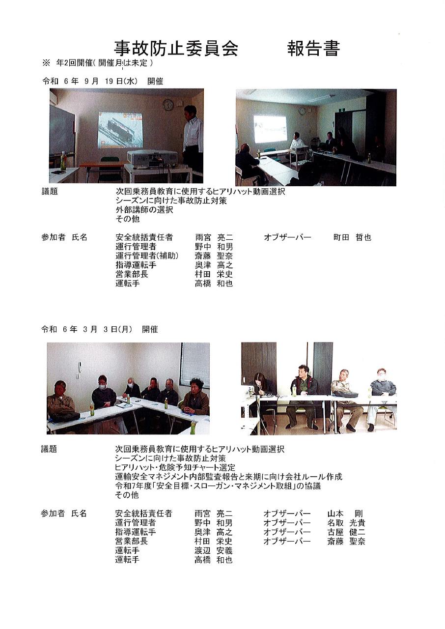 毎日のミーティングをはじめ、月1回の安全対策会議を実施して社員全体で意識を高めております。
